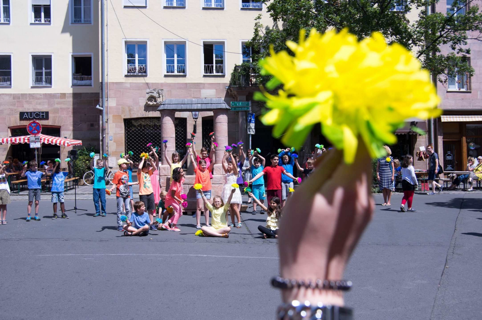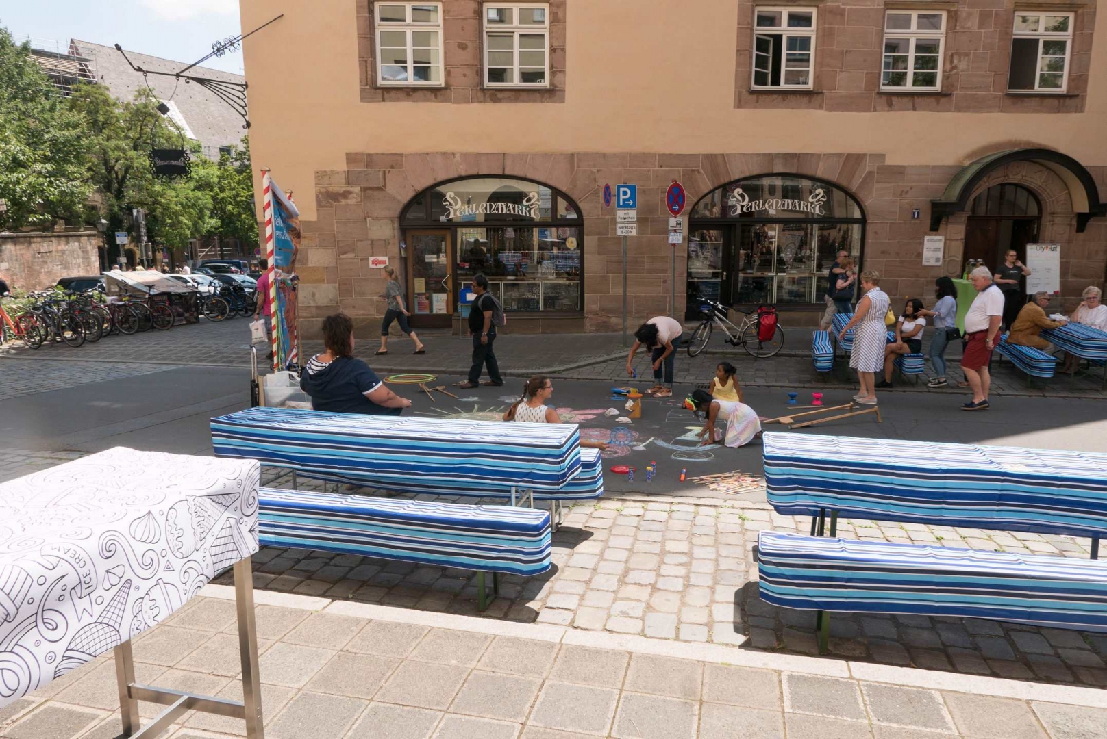 Ganz ohne Autos konnten Kinder an diesem Tag auf dem Weinmarkt auf der Straße spielen.