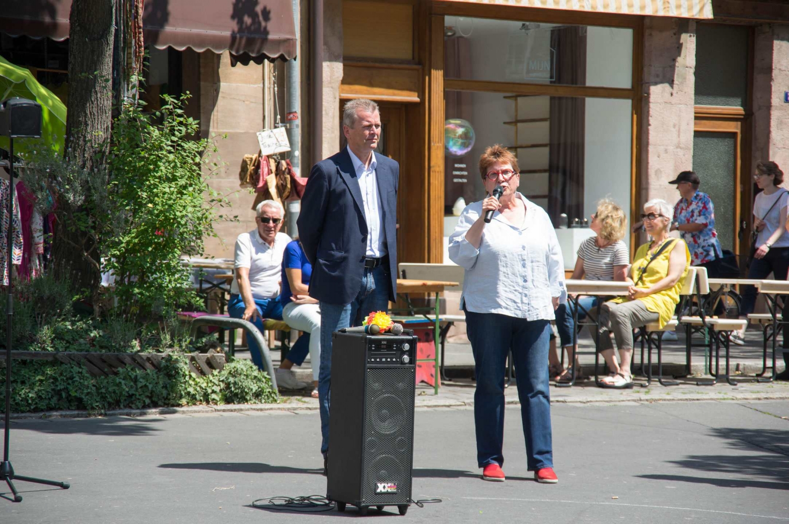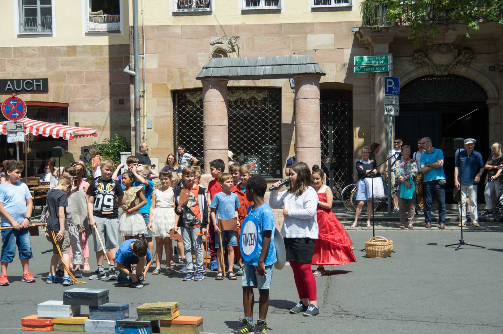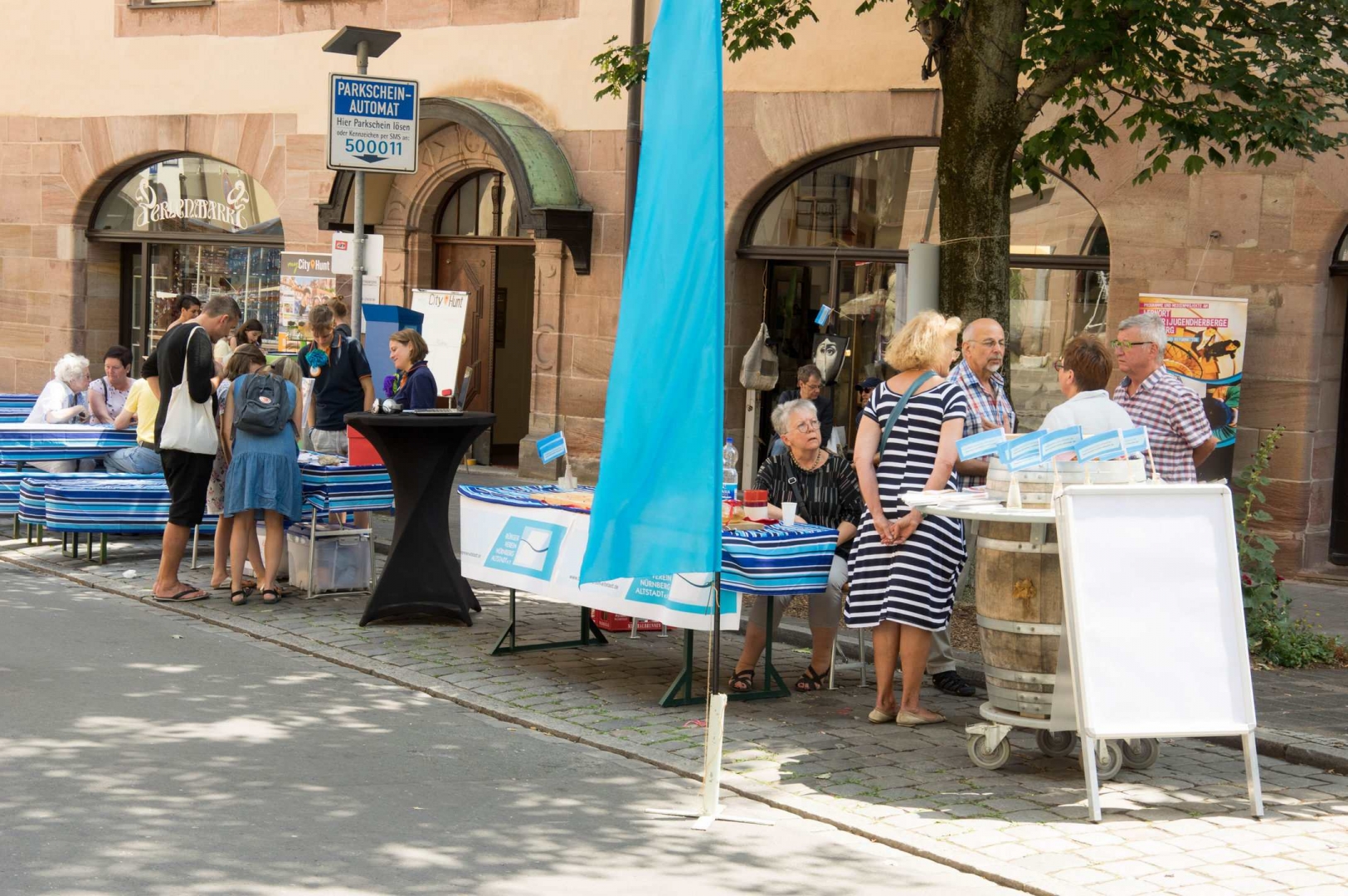 OB Dr. Ulrich Maly und die Vorsitzende des Bürgervereins Nürnberg-Altstadt Elisabeth Most eröffneten mit Unterstützung der Kinder aus der Paniersschule pünktlich das diesjährige Weinmarktfest.