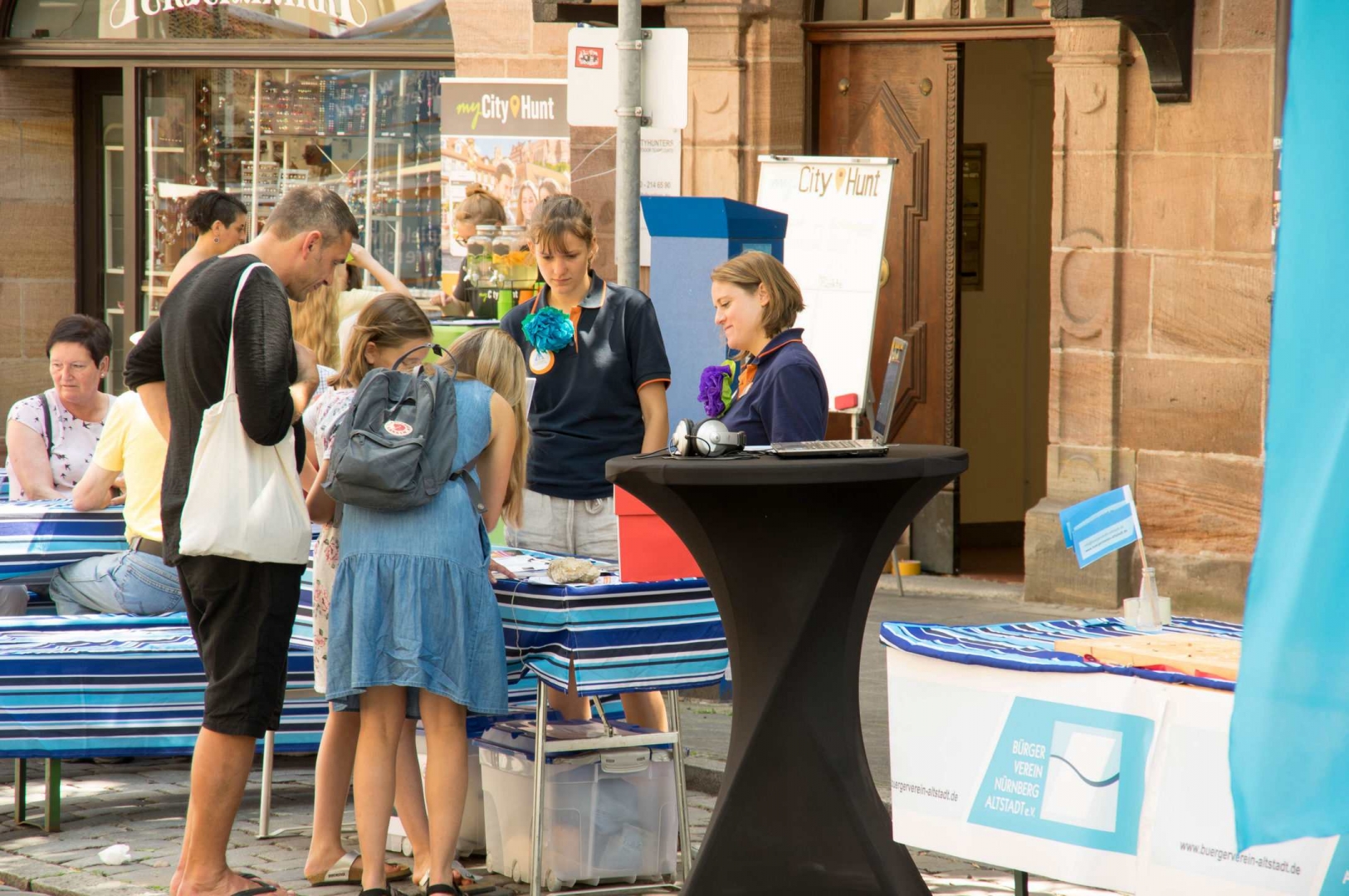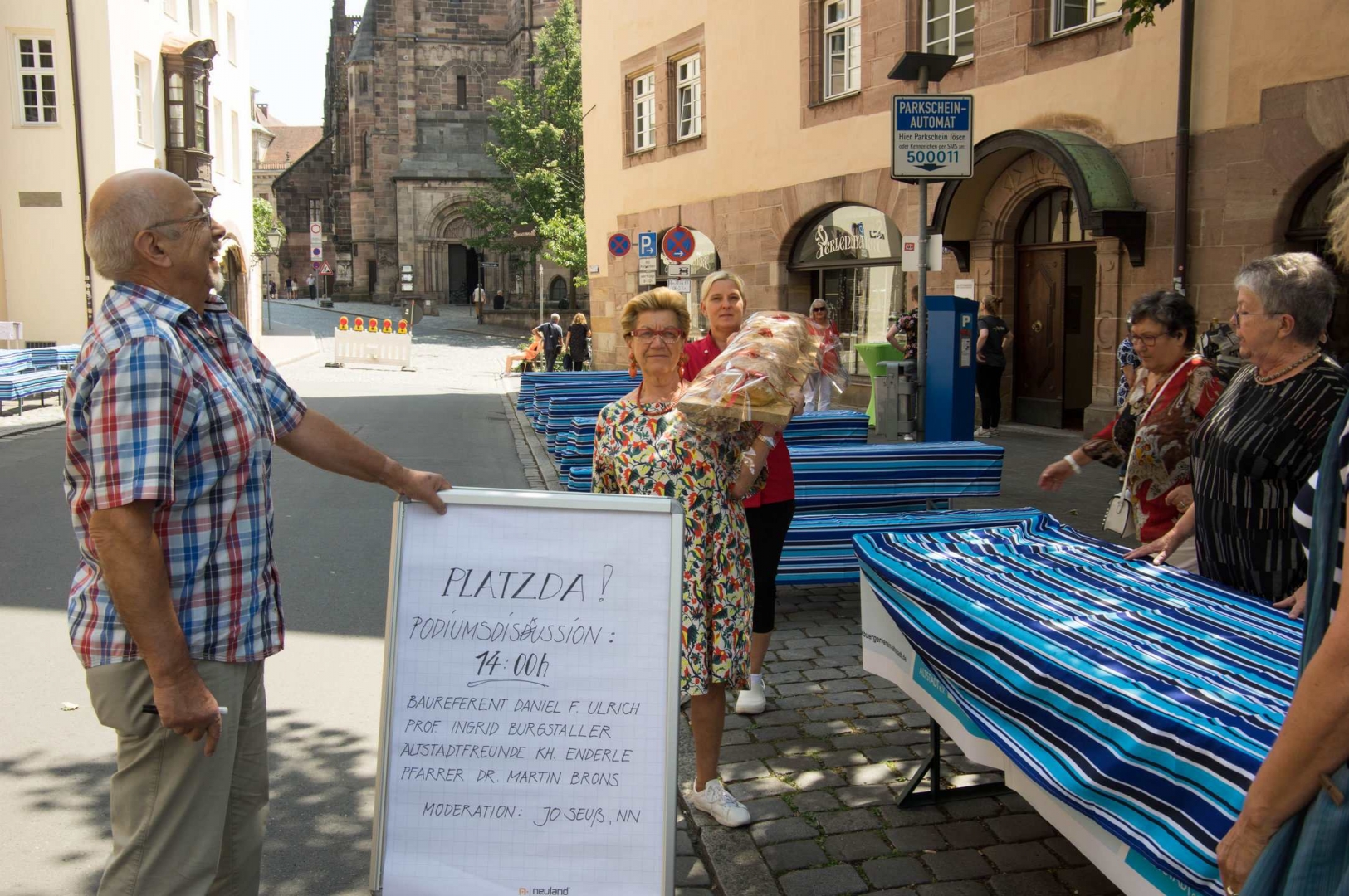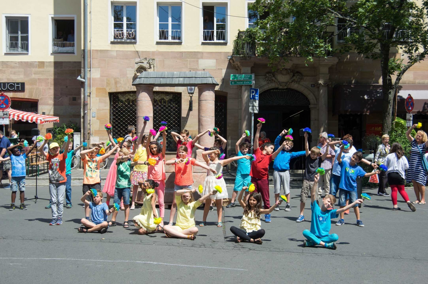 OB Dr. Ulrich Maly und die Vorsitzende des Bürgervereins Nürnberg-Altstadt Elisabeth Most eröffneten mit Unterstützung der Kinder aus der Paniersschule pünktlich das diesjährige Weinmarktfest.