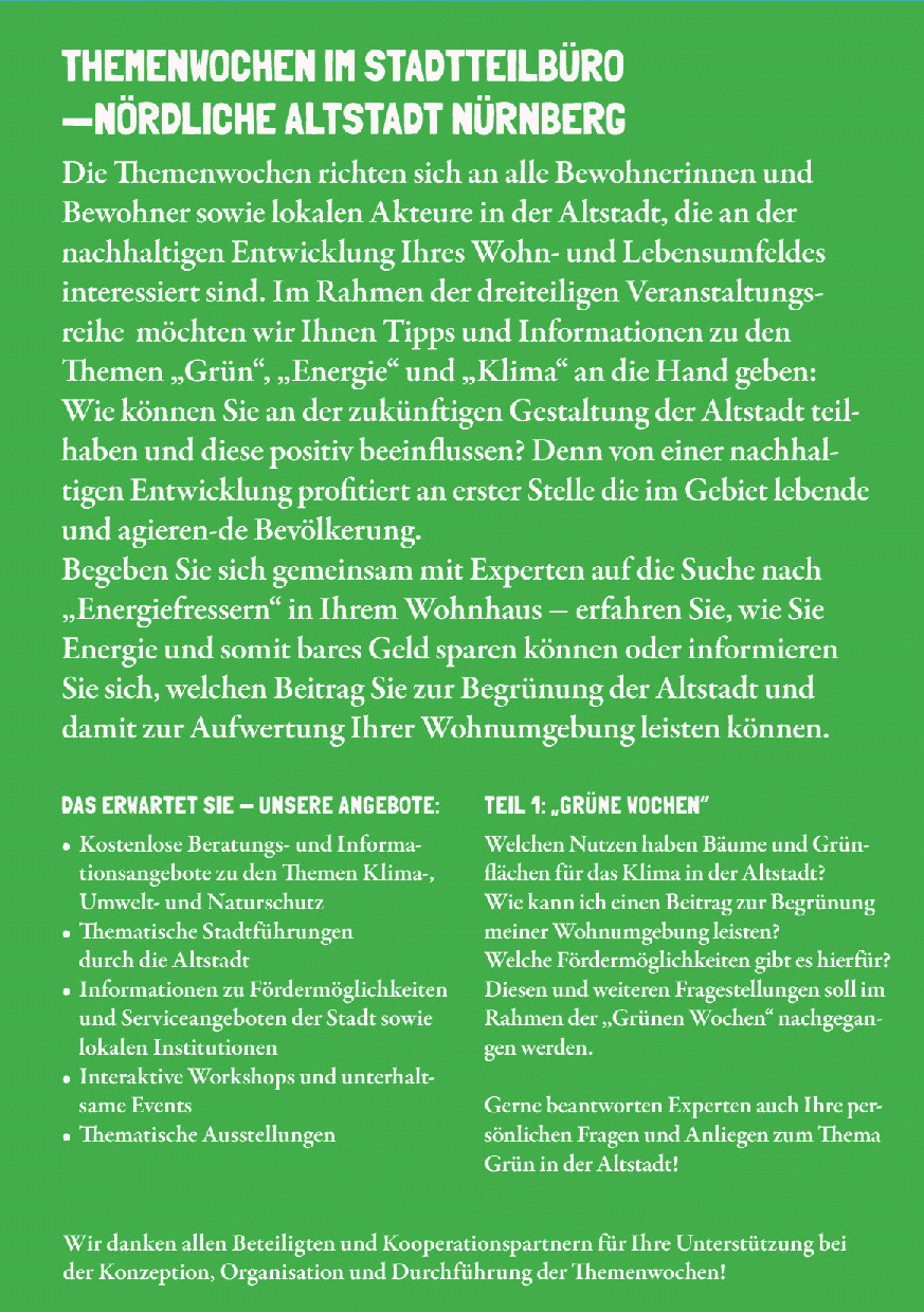 Bewusstsein für eine nachhaltige Entwicklung der Altstadt schaffen – das ist das Ziel der Themenwochen Grün, Energie und Klima im Stadterneuerungsgebiet.