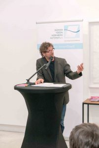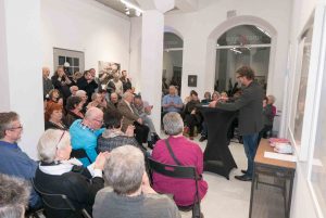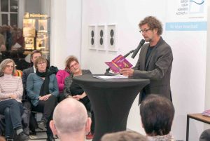mit viel Spaß gingen Mitglieder und Gäste am Jahresempfang 2018 ins neue Jahr. Nach Begrüßung durch Elisabeth Most und „Hausherrin“ Claudia Jennewein von der Galerie Kunstkontor überbrachte Bürgermeister Vogel die Grüße der Stadt. Viel Spaß und Hintersinniges gab es von Kabarettist Bernd Regenauer.