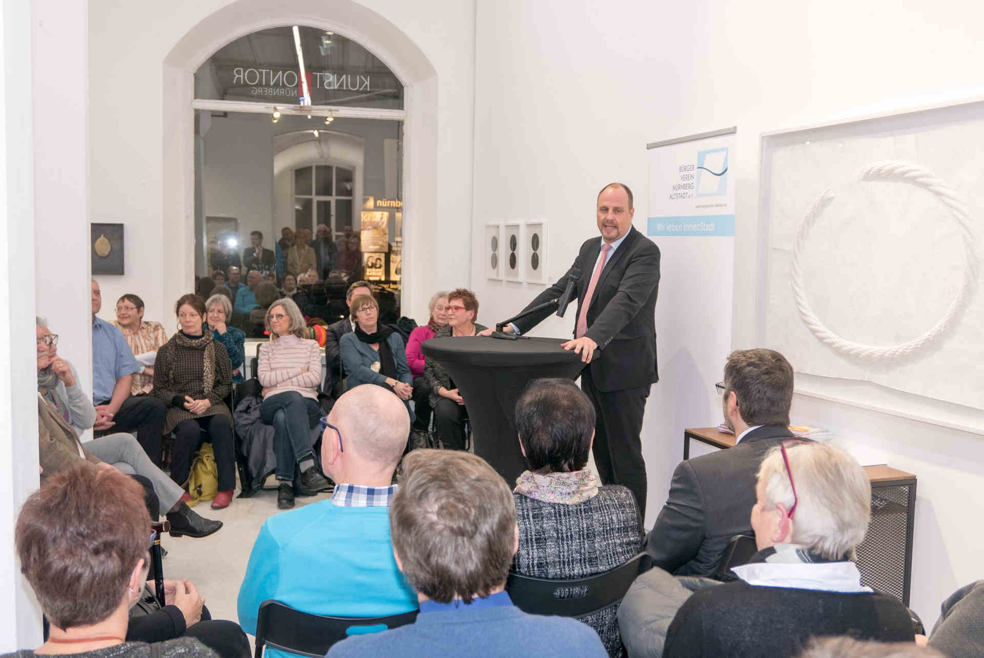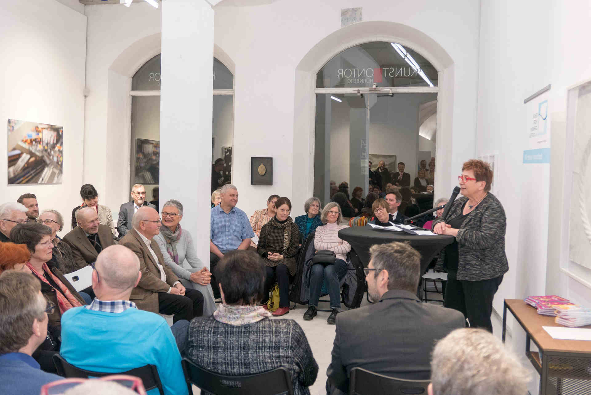 mit viel Spaß gingen Mitglieder und Gäste am Jahresempfang 2018 ins neue Jahr. Nach Begrüßung durch Elisabeth Most und „Hausherrin“ Claudia Jennewein von der Galerie Kunstkontor überbrachte Bürgermeister Vogel die Grüße der Stadt. Viel Spaß und Hintersinniges gab es von Kabarettist Bernd Regenauer.
