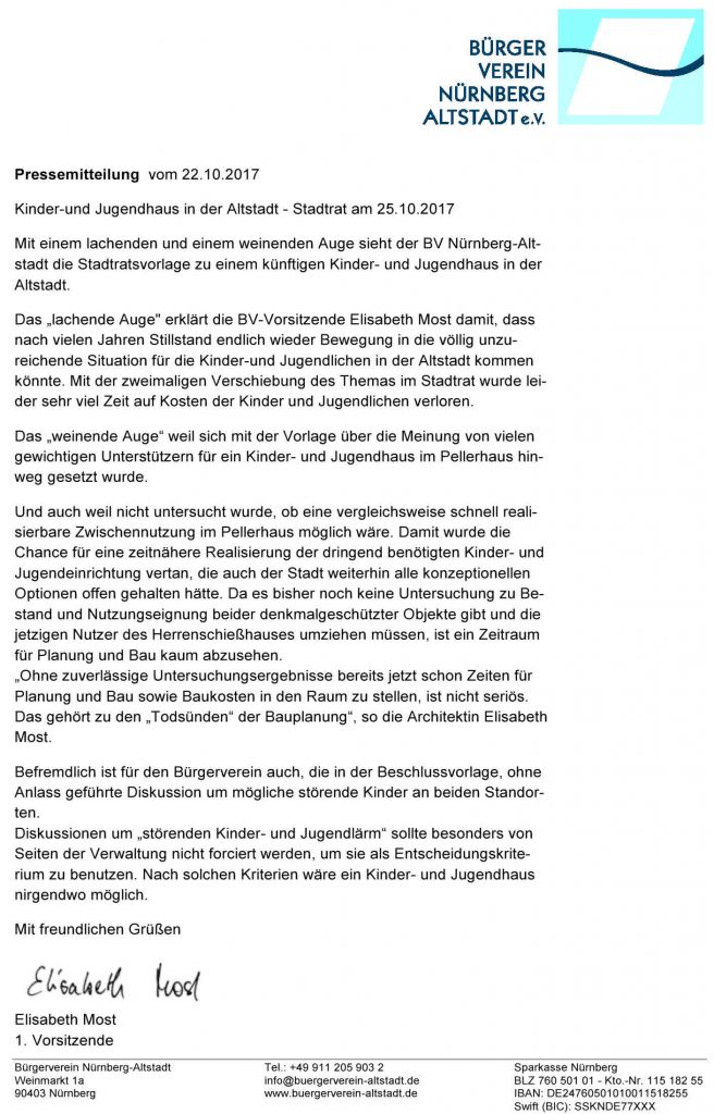 Ein lachendes und ein weinendes Auge Pressemitteilung zur Vorlage zum Kinder- und Jugendhaus in der Altstadt im Stadtrat am 25. Oktober 2017