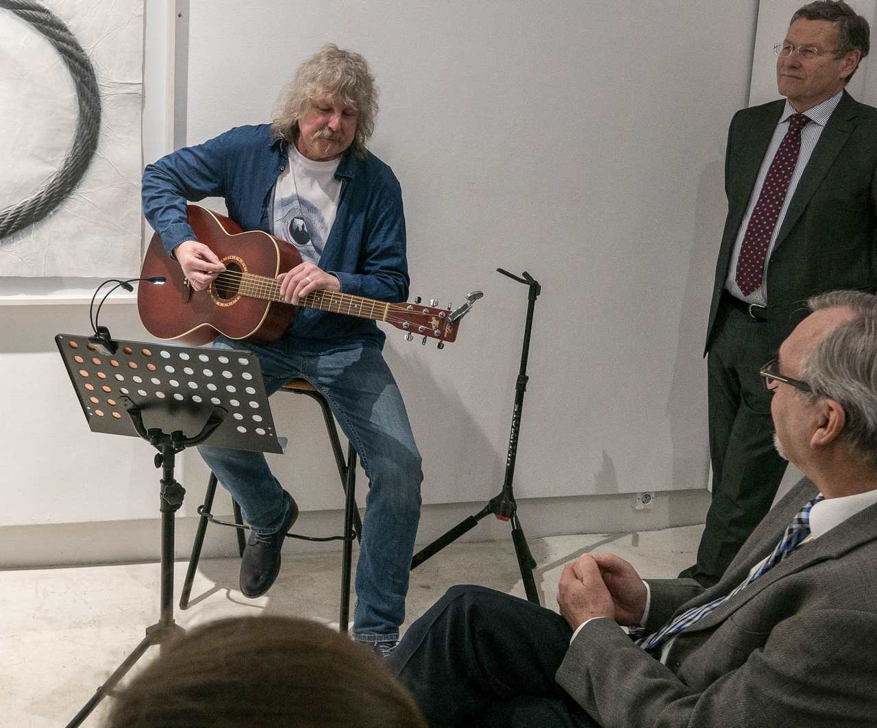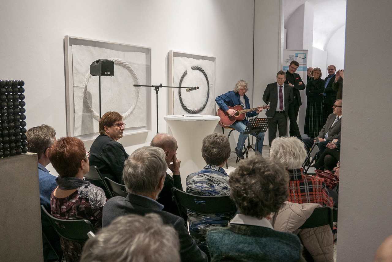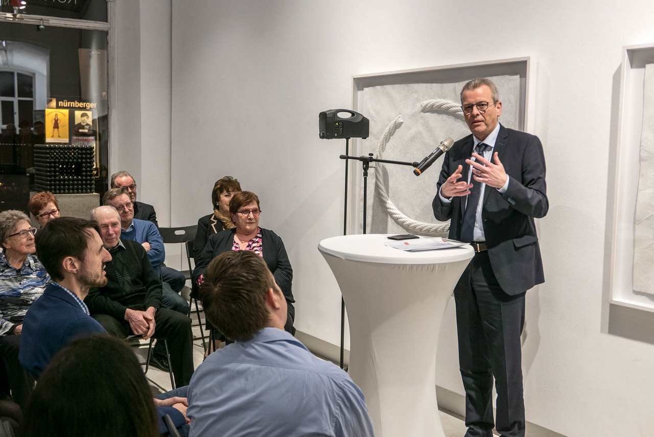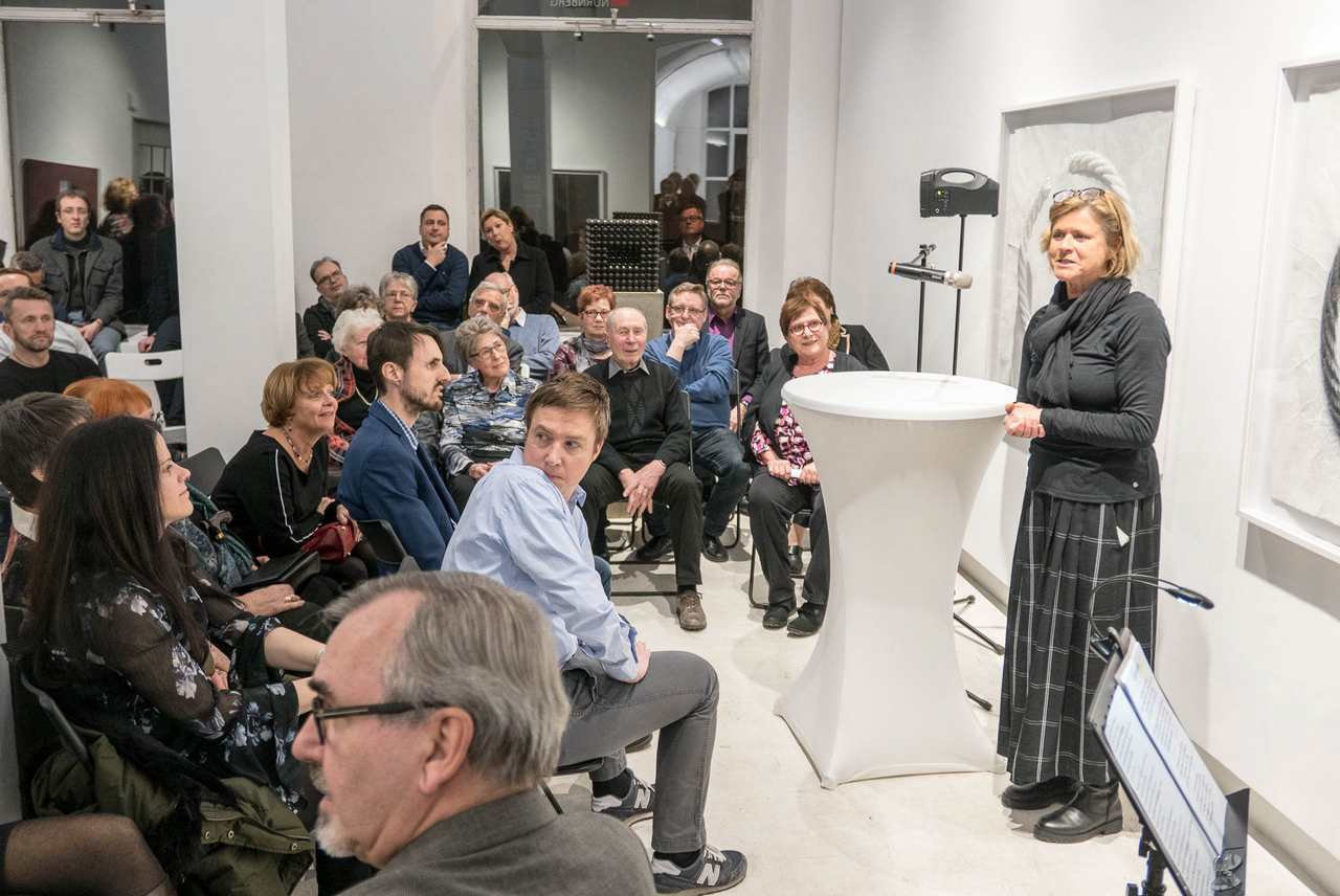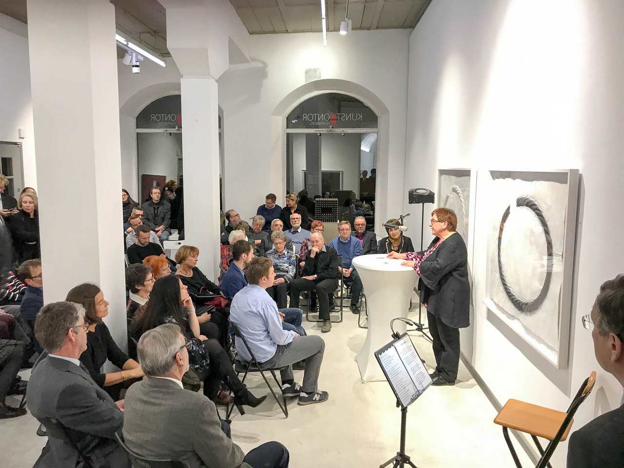 Claudia Jennewein, Gastgeberin im KunstKontor begrüßte nicht nur alle Gäste, sondern konnte auch einen Gruß des Künstlers Till Augustin an unseren Oberbürgermeister übermitteln, der alle Besucher zum Schmunzeln brachte.